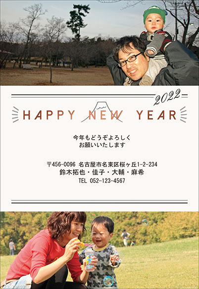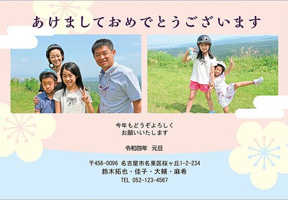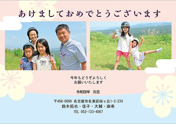 写真レイアウトの変更(大幅な位置、向きの変更、枚数変更)によるデザイン変更は、1件につき200円〜追加料金が必要です。