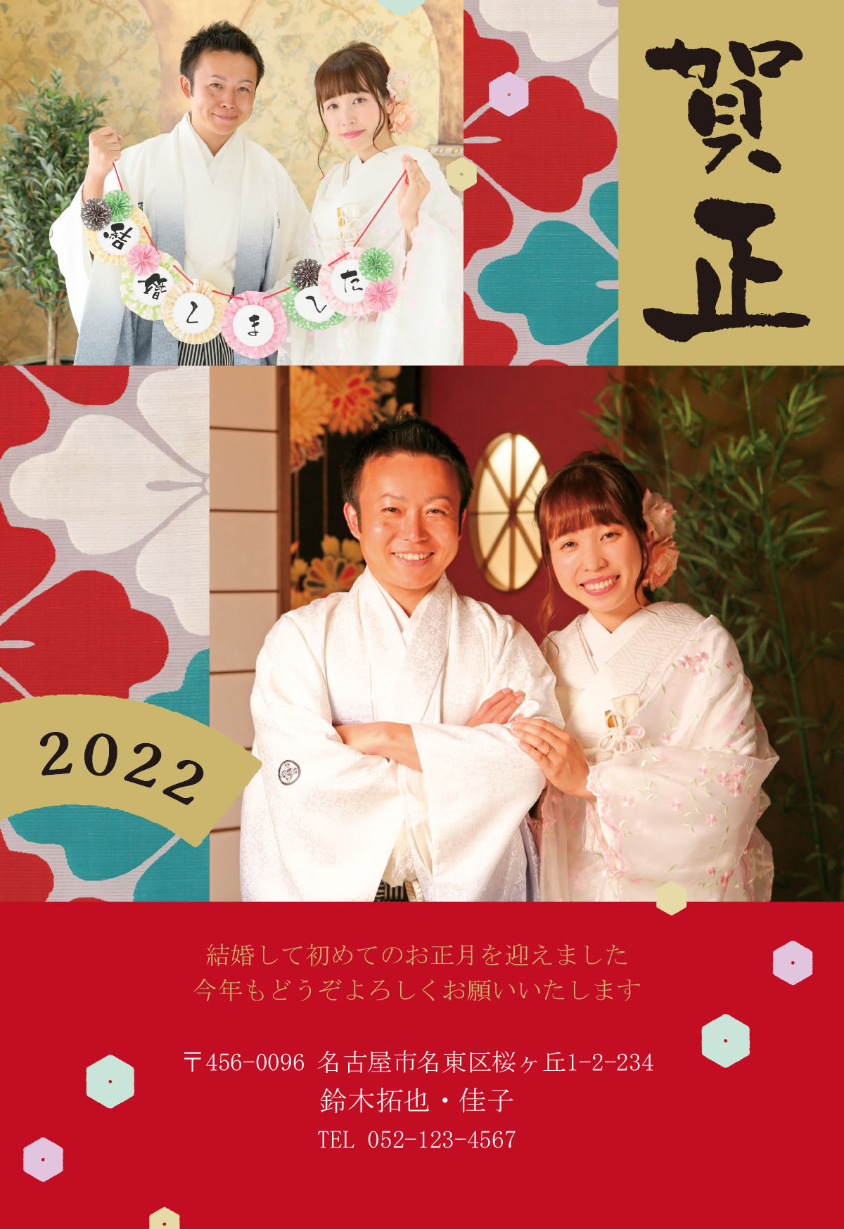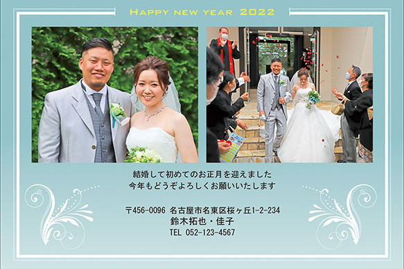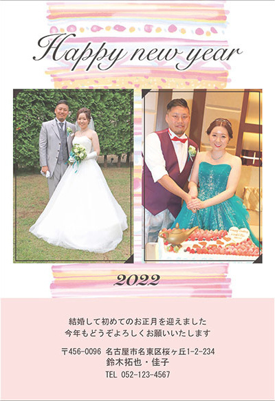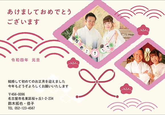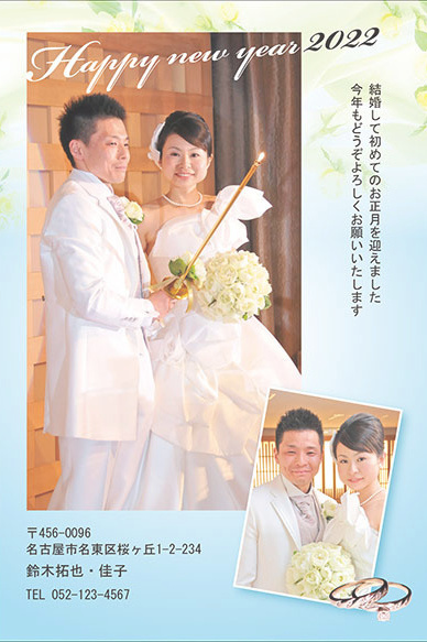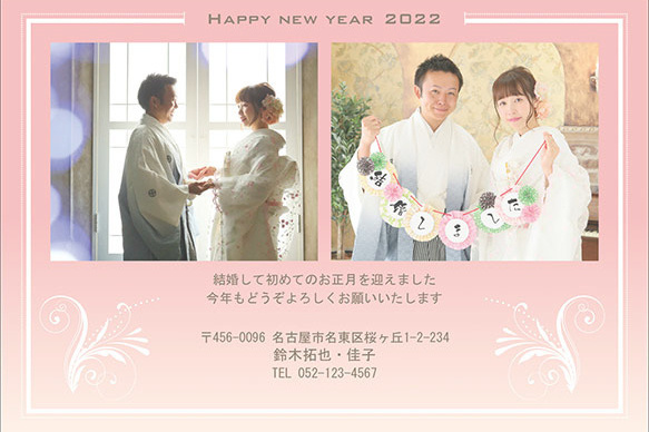 結婚挨拶兼用として「結婚しました」「Just Married」の追加、誕生用報告兼用として「生年月日・なまえ」の追加、転居挨拶兼用として「引っ越しました」などのタイトル追加は、無料です。